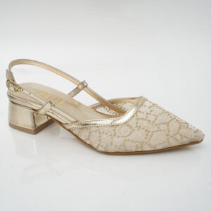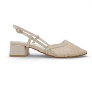 Escarpin raffiné au design délicat, sublimé par des empiècements en tulle fin sur les deux côtés, apportant une touche de féminité et de légèreté.
