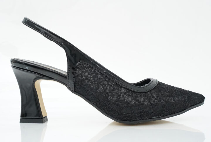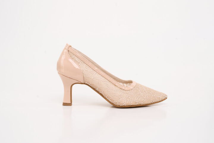 Escarpin raffiné au design délicat, sublimé par des empiècements en tulle fin sur les deux côtés, apportant une touche de féminité et de légèreté.