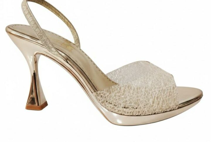 Ces sandales en transparent paillités avec finitions métallisées sublimeront vos tenues de soirée. Talon aiguille, confort et glamour assurés.